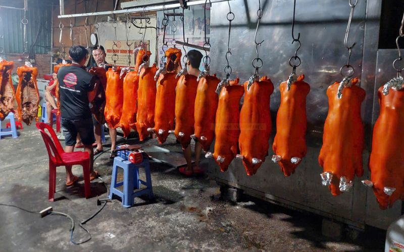 Quay heo trong lò sạch sẽ: Lò quay heo được vệ sinh thường xuyên, đảm bảo không bị ám khói bụi hay mùi cũ. Thợ quay canh lửa cẩn thận, trở heo liên tục để chín đều các mặt. Suốt quá trình quay, luôn có người giám sát nhiệt độ và độ chín của heo. Nhờ vậy, heo quay thành phẩm luôn chín kỹ mà không bị cháy, an toàn cho sức khỏe người dùng.